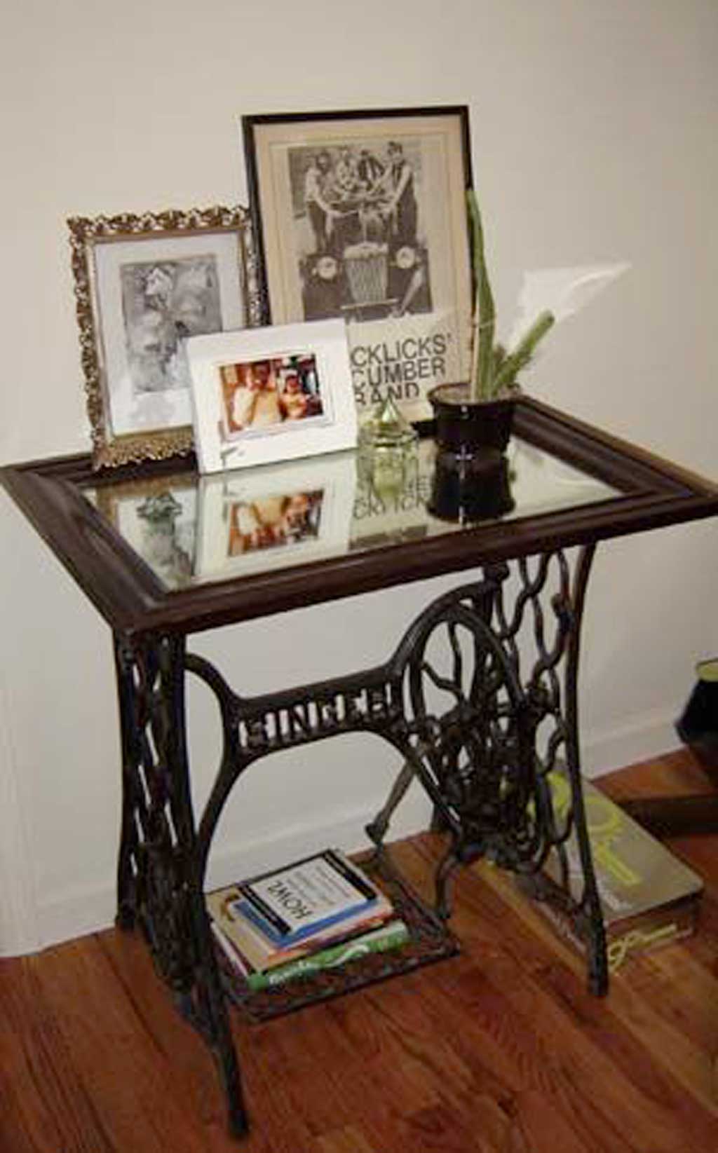 Turn your old sewing machine into unique vintage side table with just a little work. These side tables are wonderful and would make great décor for any room.